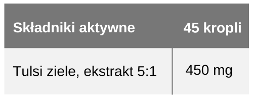 Składniki: Ekstrakt z ziela tulsi, gliceryna roślinna, glikol propylenowy, witamina C, kwas jabłkowy, witamina E, cytrynian sodu.